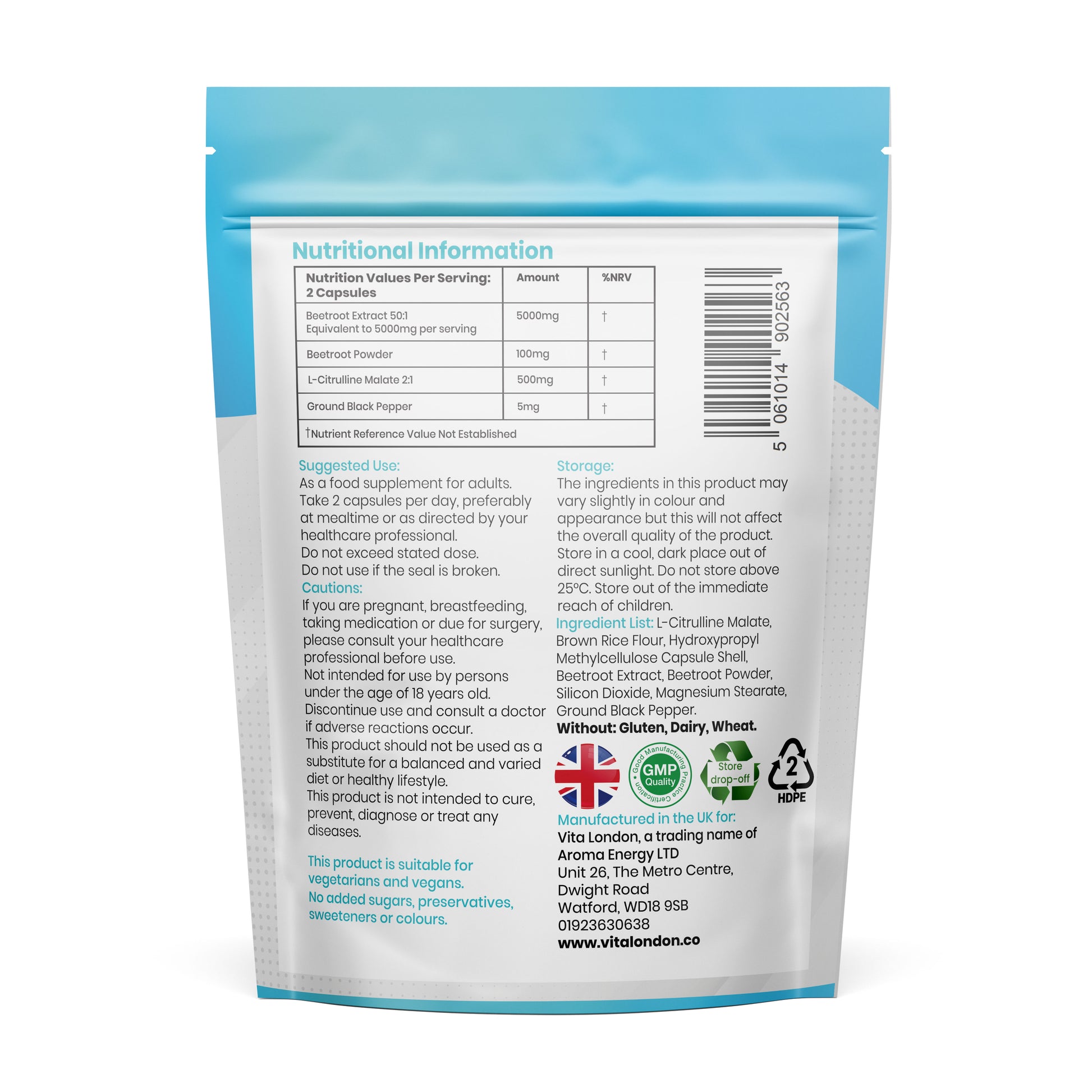 Beetroot 5000mg Capsules (with L-Citrulline Malate + Black Pepper) – 60 Vegan Capsules