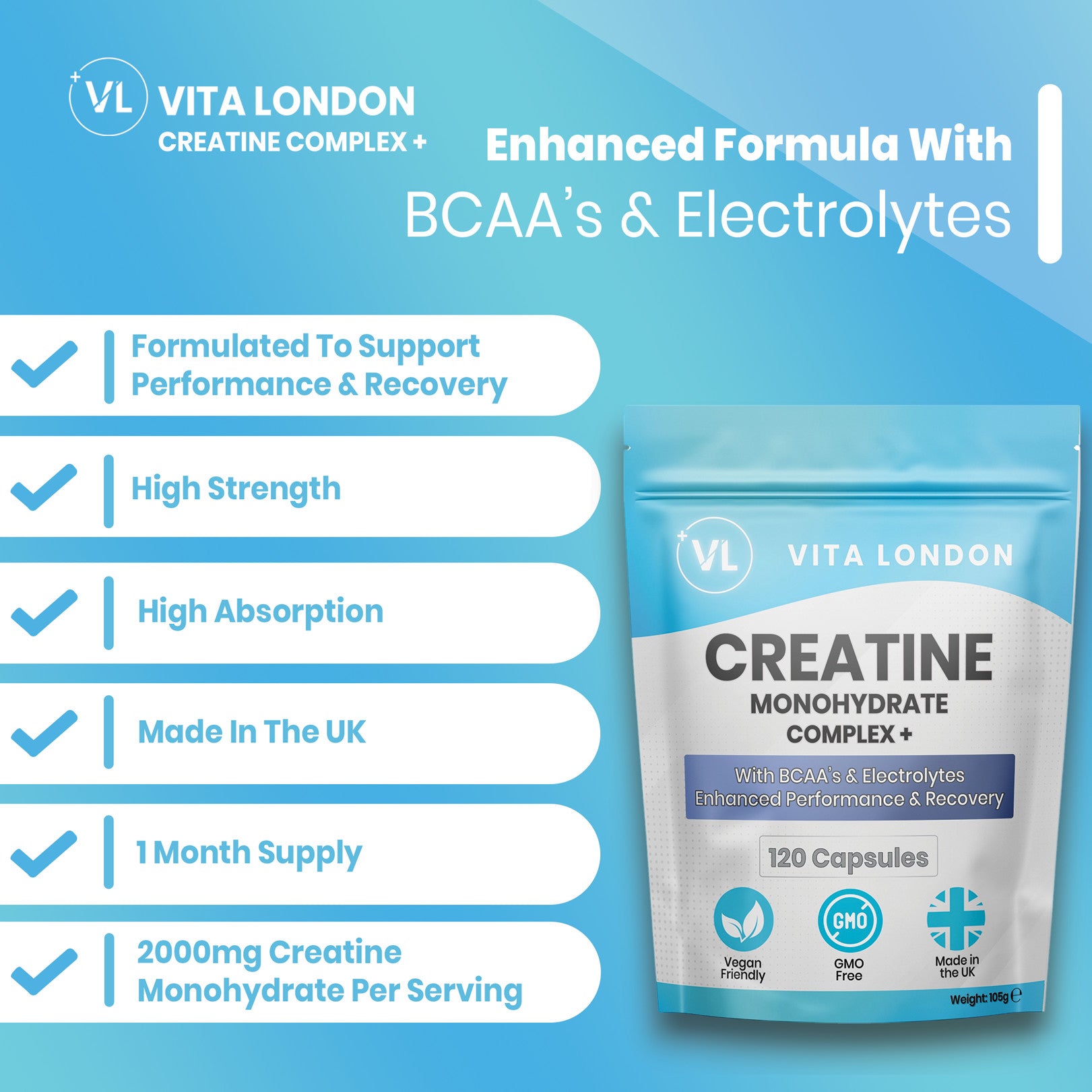 Stay ahead in your fitness journey with Vita London’s Creatine Complex Capsules – your partner in achieving strength, endurance, and recovery goals.