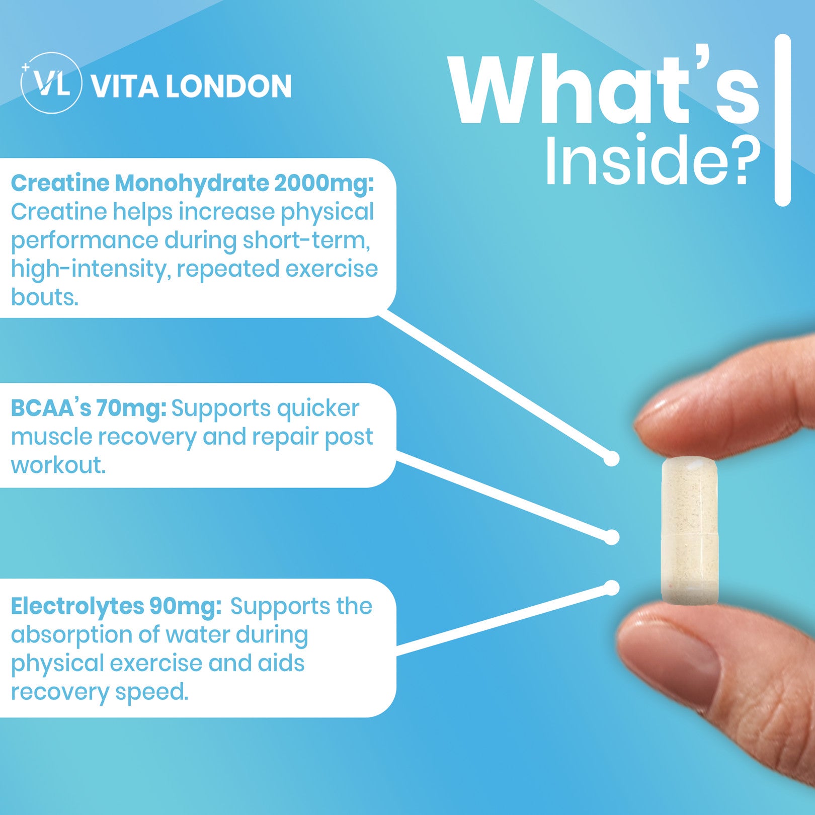 Elevate Your Fitness Game with Vita London’s Creatine Complex Capsules.